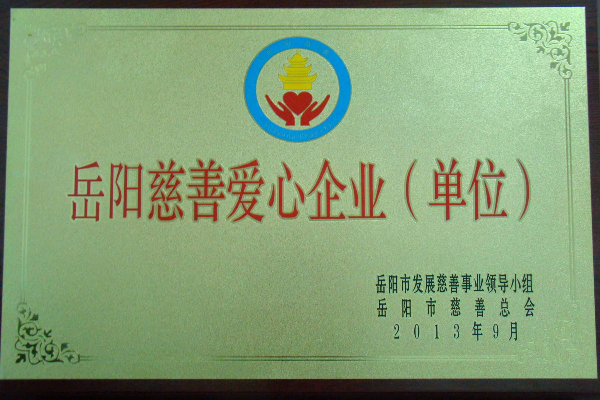 公司獲“岳陽市慈善愛心企業(yè)”榮譽(yù)稱號