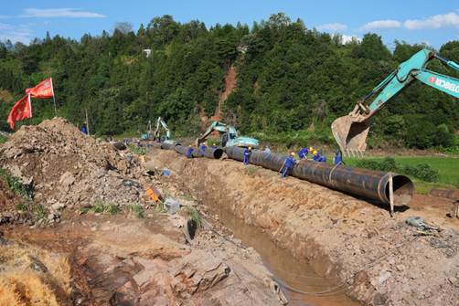 7月4日早上7:00,中國化學(xué)四公司在接到平江縣委縣政府的緊急救援請求后,迅速開展安排部署,抽調(diào)公司岳化新材料項目40名施工人員組成應(yīng)急搶險突擊隊,同步完成機具調(diào)配,火速馳援平江,搶修堯塘水庫引水主管道。